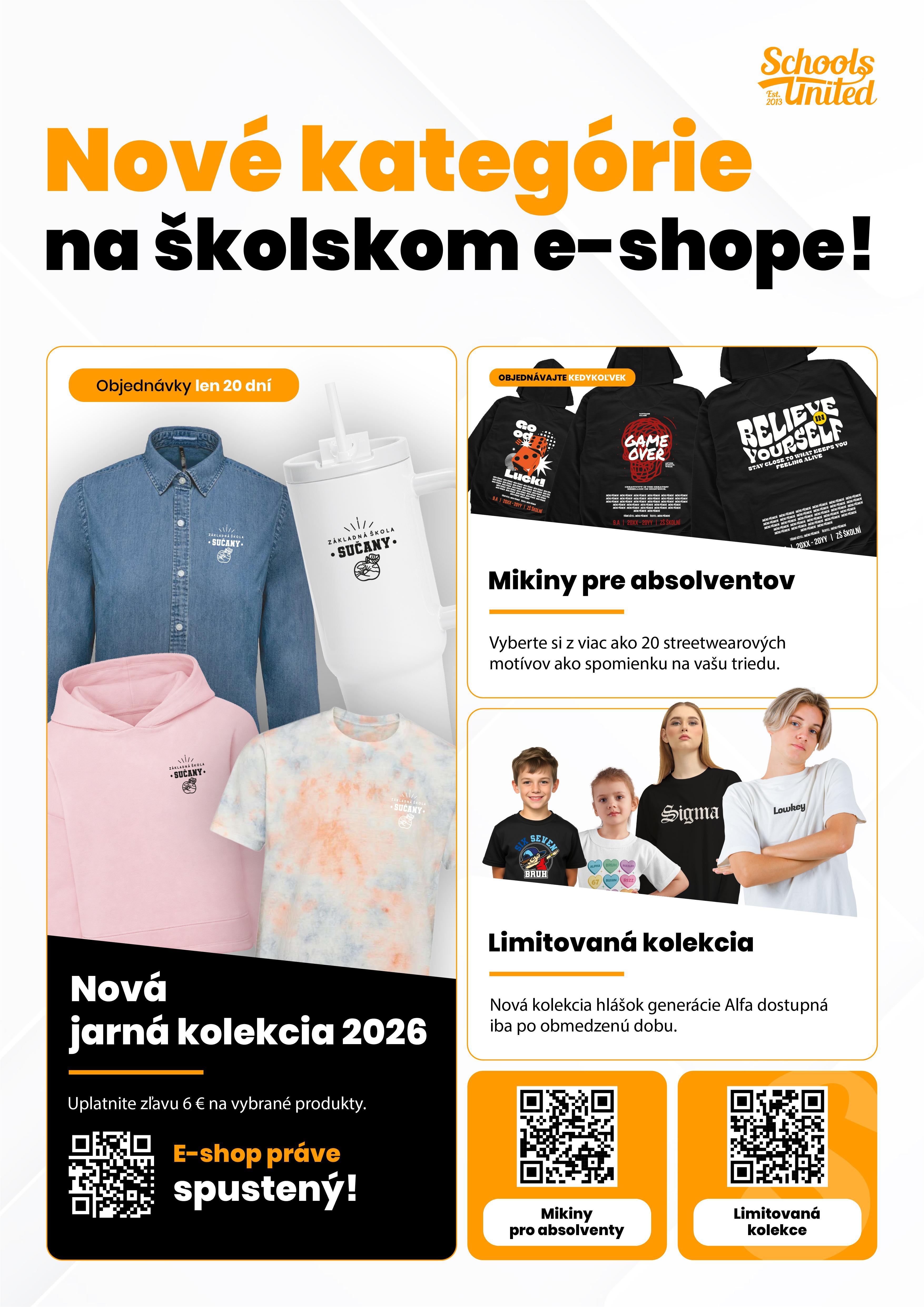 s radosťou Vám oznamujeme, že sme pre Vás spustili školský e-shop našej školy. Nájdete v ňom novú kolekciu oblečenia a doplnkov, ktoré podporujú spolupatričnosť, hrdosť a pozitívny vzťah k našej škole – pre žiakov, rodičov aj učiteľov.